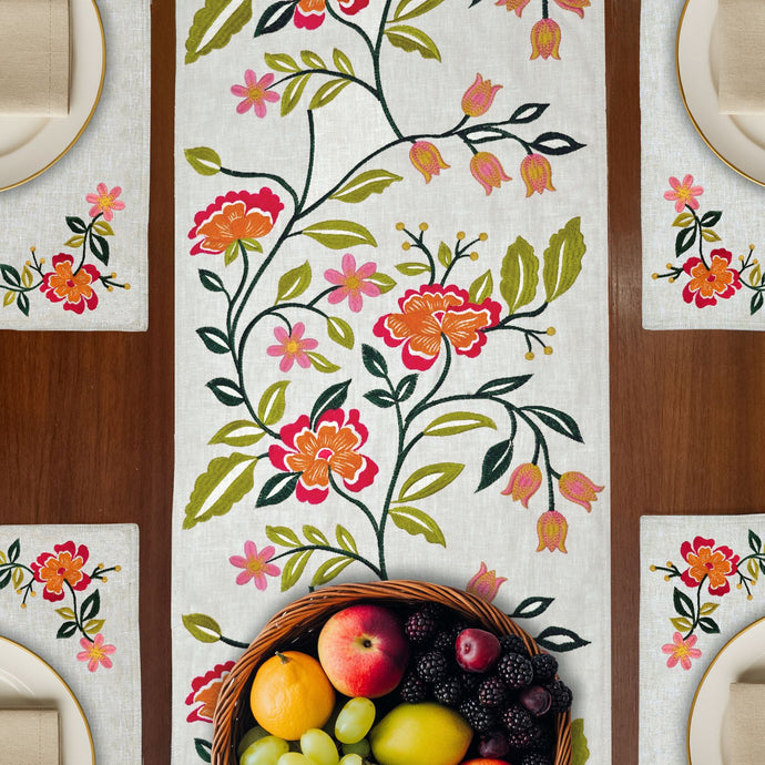 Elevate your dining experience with Aalekhym’s embroidered table linen — where tradition meets timeless design. Each piece is thoughtfully crafted with delicate embroidery, blending cultural artistry with contemporary elegance. Perfect for everyday dining or festive gatherings, these runners add a touch of sophistication and charm, turning every table into a canvas of the art of living.